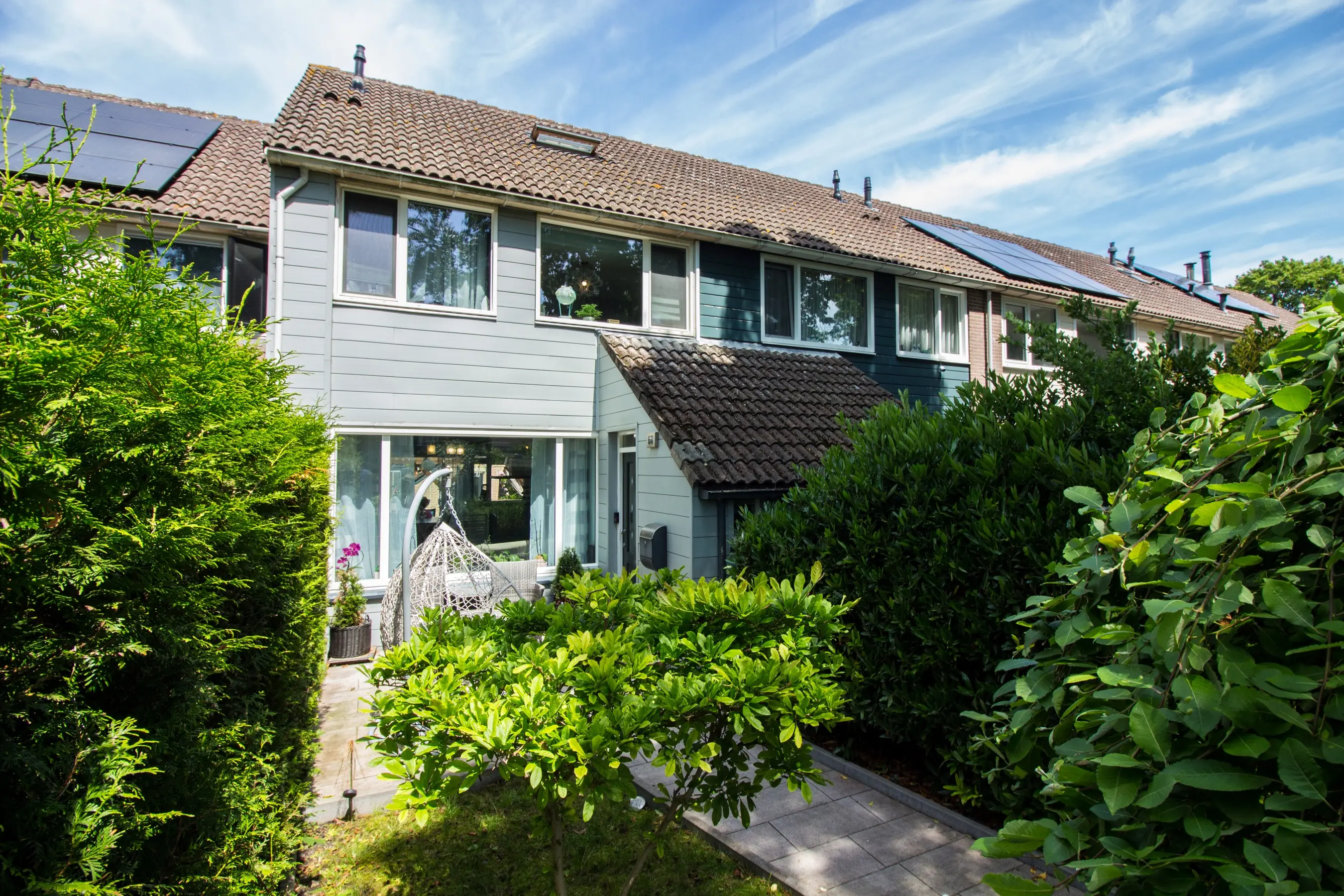 Tuin: de royale achtertuin pakt heerlijk de westenzon ’s avonds mee. De tuin ziet er keurig netjes uit, is volledig voorzien van sierbestrating en deze kunt u achterom bereiken via de achterpoort. De veranda achter de woning vormt een leuke overgang van de woning naar de tuin toe.