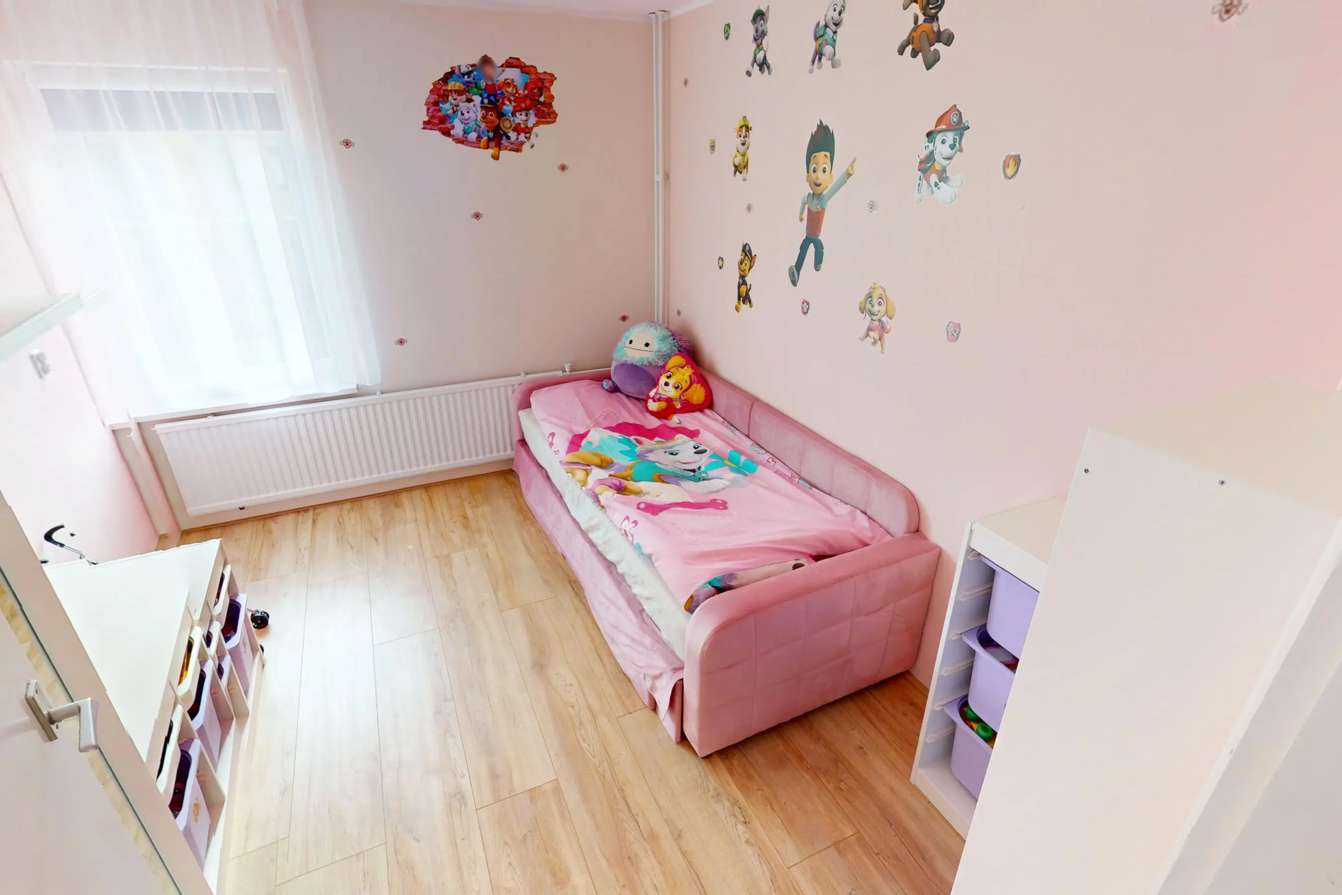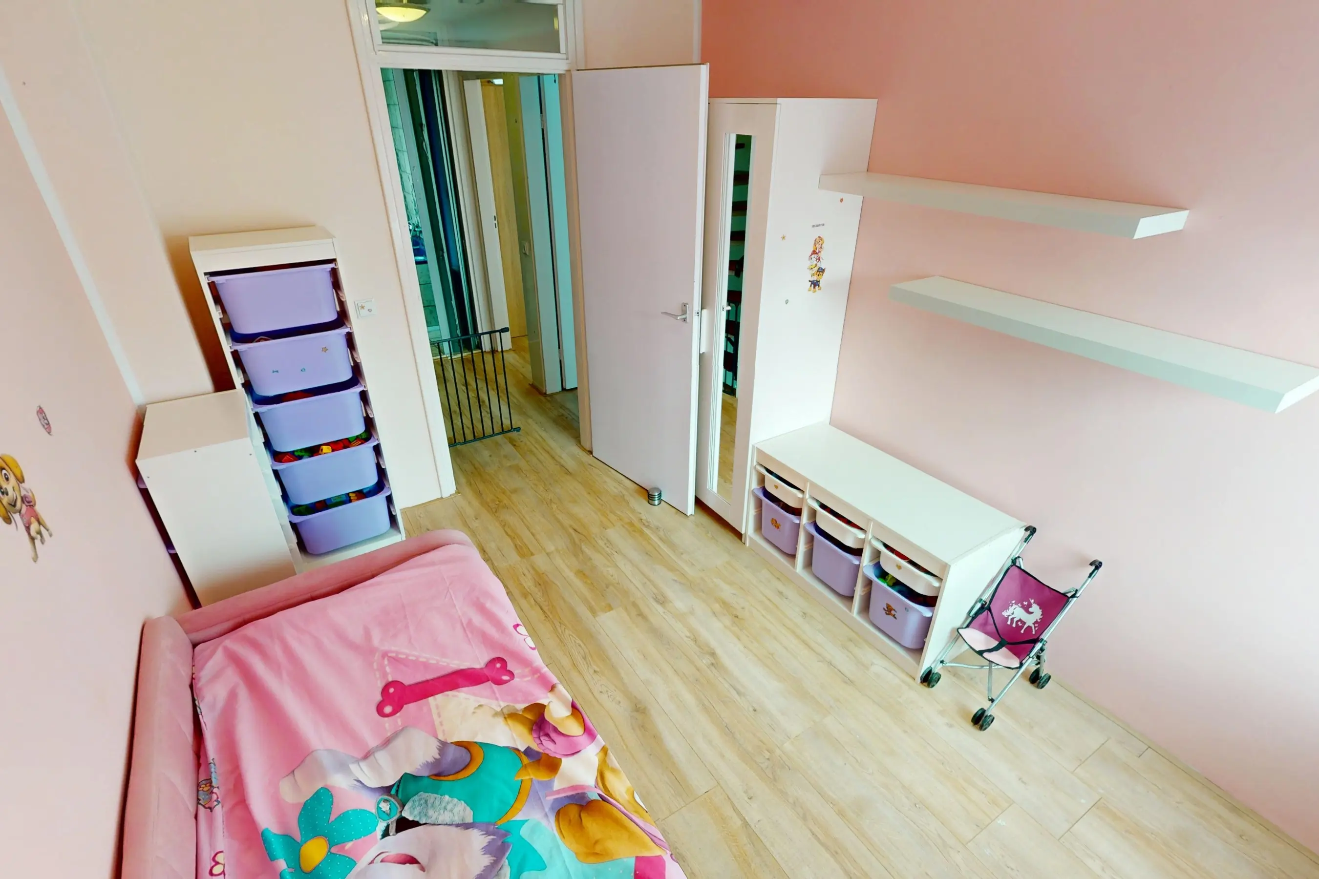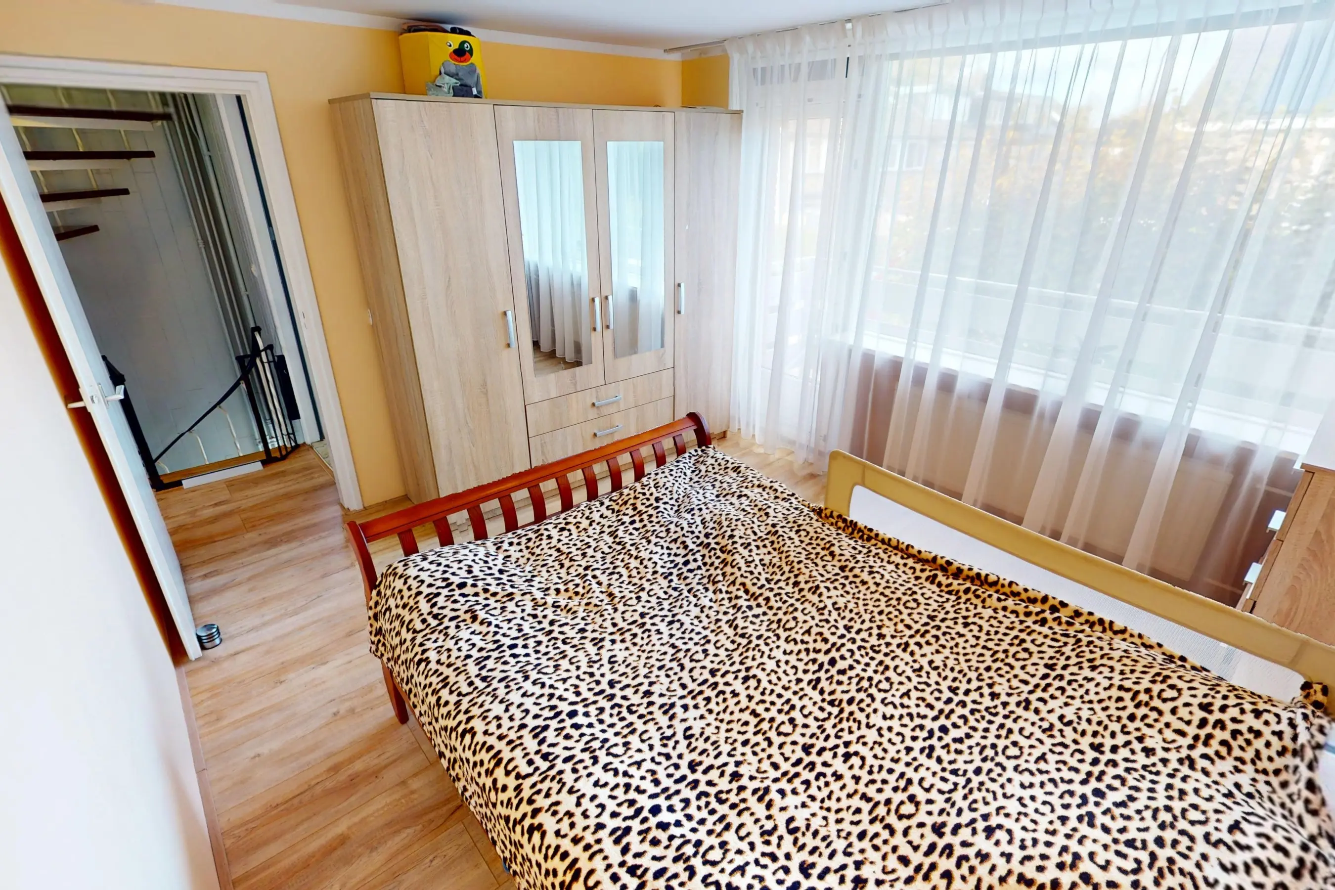 1e verdieping: de 1e etage herbergt een 3-tal slaapkamers van verschillende afmetingen. In een 2-tal slaapkamers op deze etage kunt u een 2-persoonsbed plaatsen. De slaapkamer aan de voorzijde is voorzien van een balkondeur, dat u toegang geeft tot het balkon. Het ziet er allemaal keurig netjes uit. Alle slaapkamers zijn voorzien van een laminaatvloer.