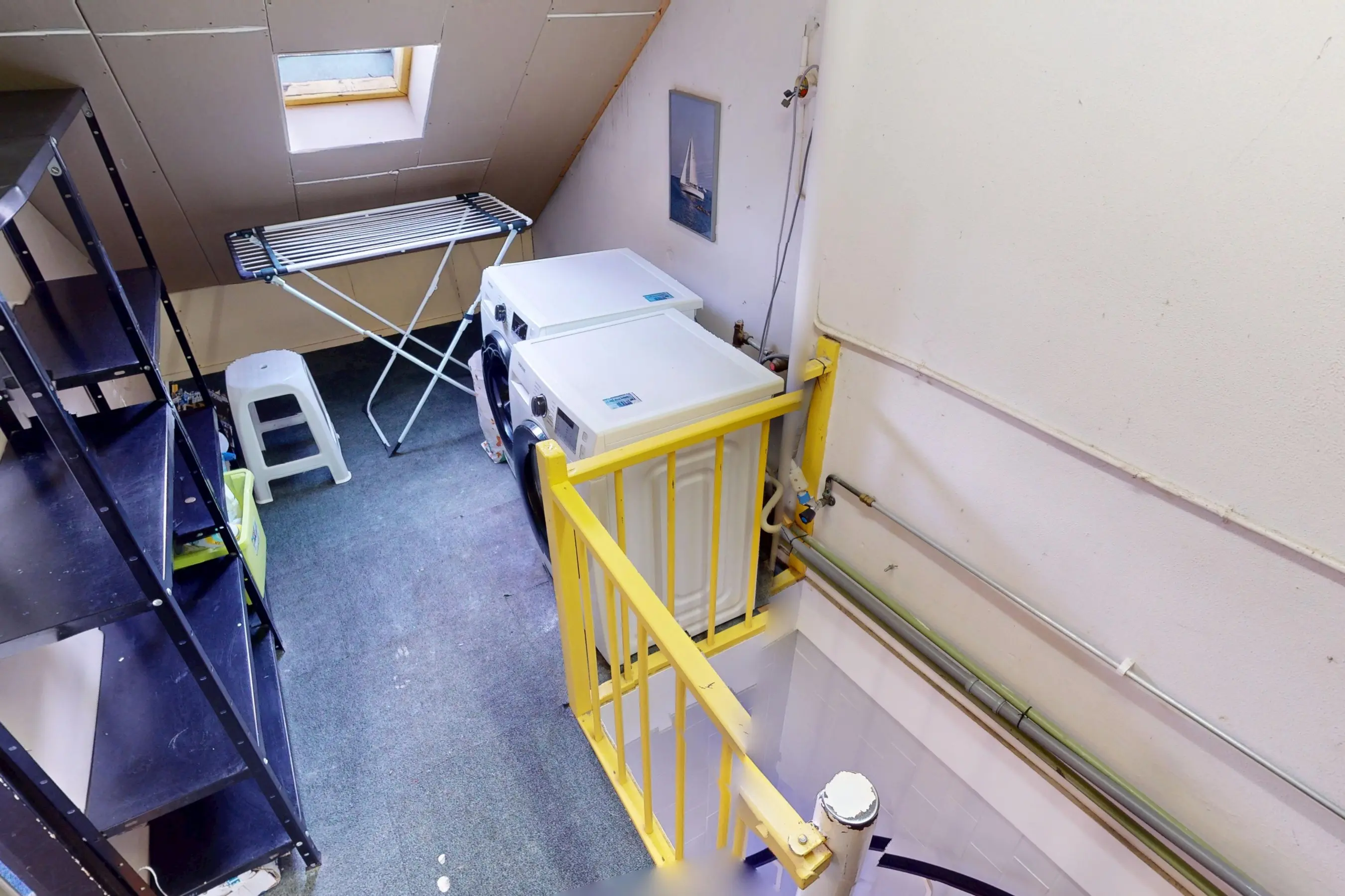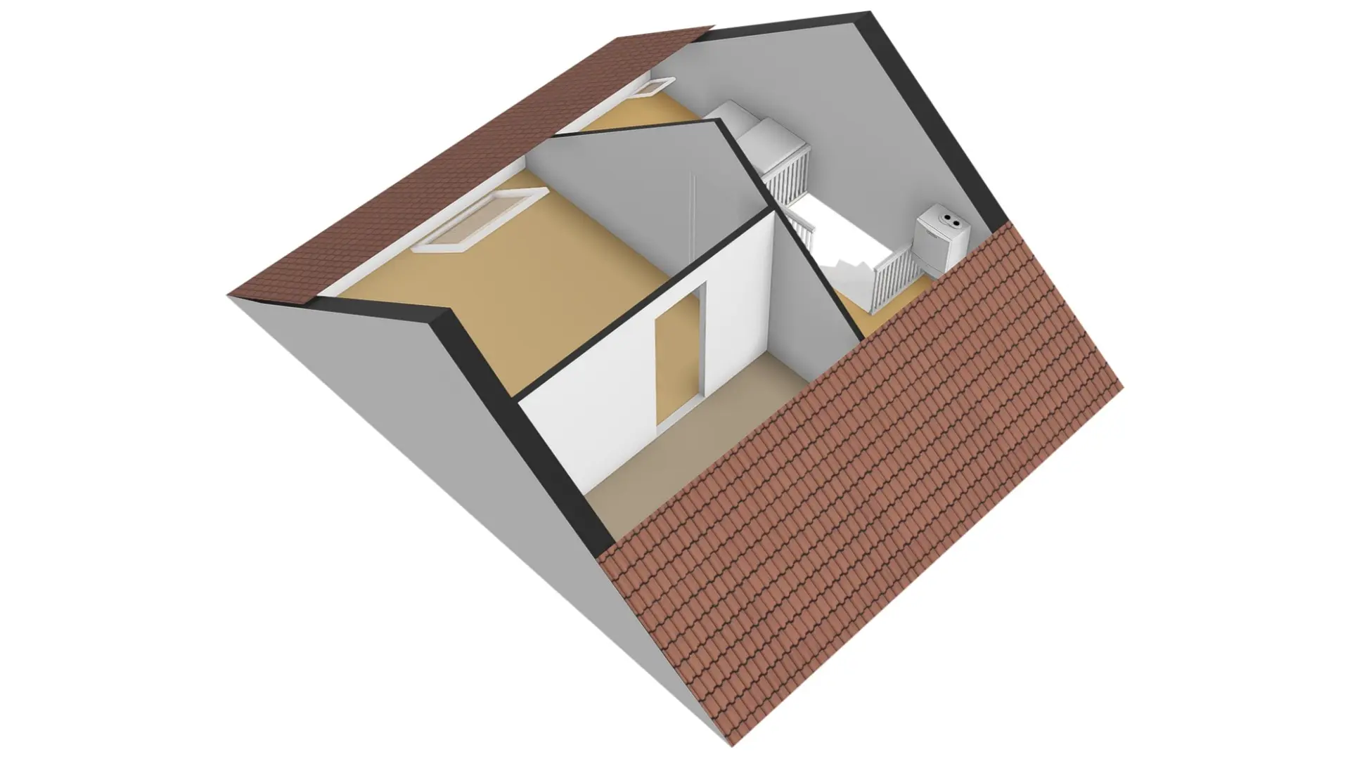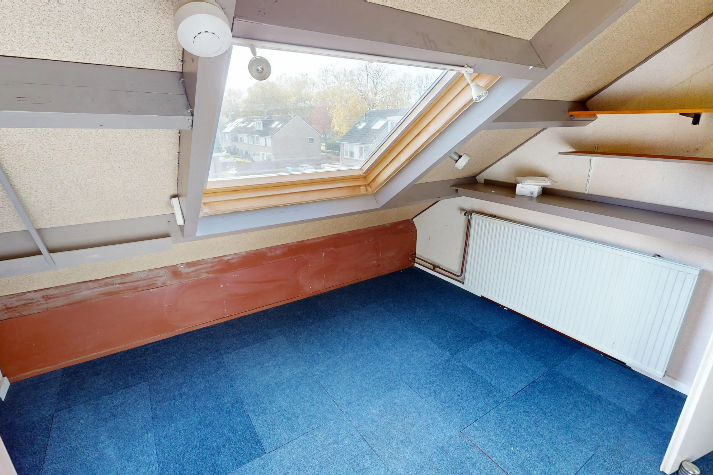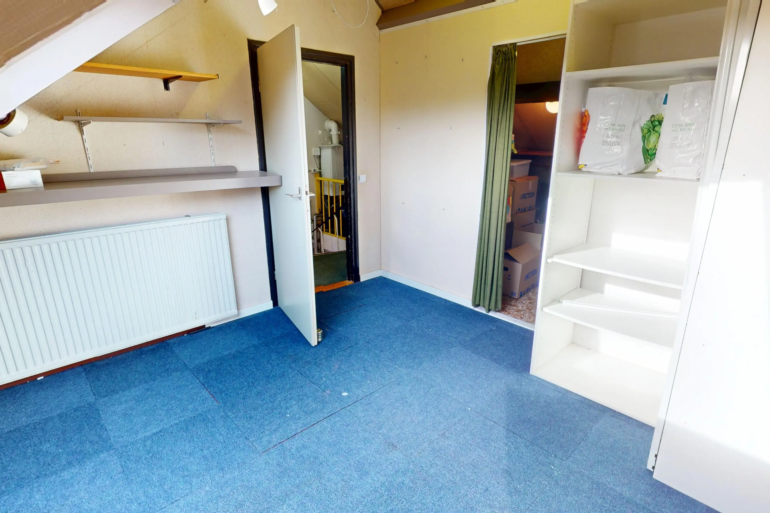 2e verdieping: via een vaste trap bereikt u de 2e etage. Op de 2e verdieping treft u een 4e slaapkamer aan. Deze kamer is voorzien van een groot dakraam. U zult tevens op deze verdieping veel bergruimte aantreffen en de CV installatie is op de overloop geplaatst. Op deze overloop kunt u tevens uw wasmachine een plekje geven.