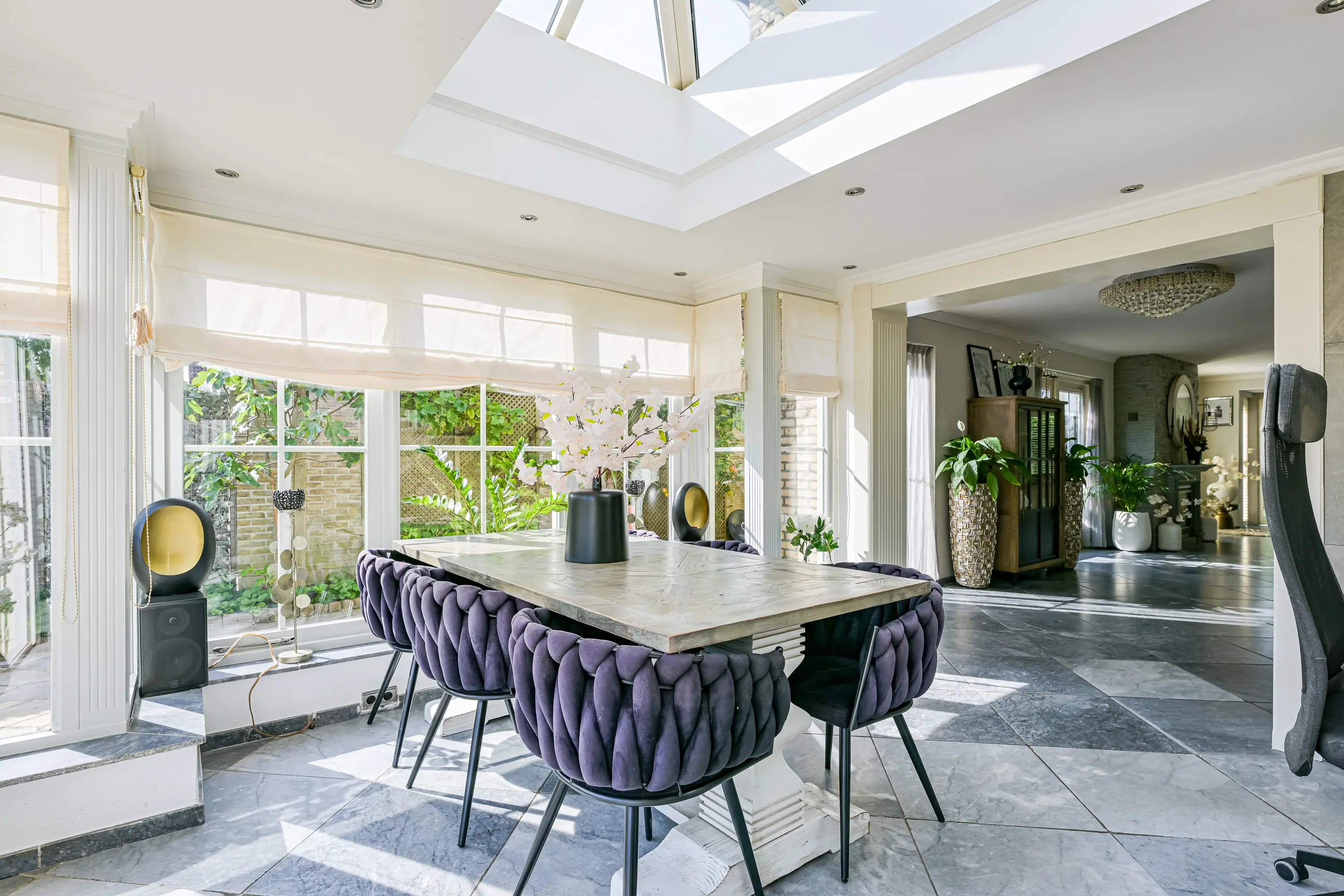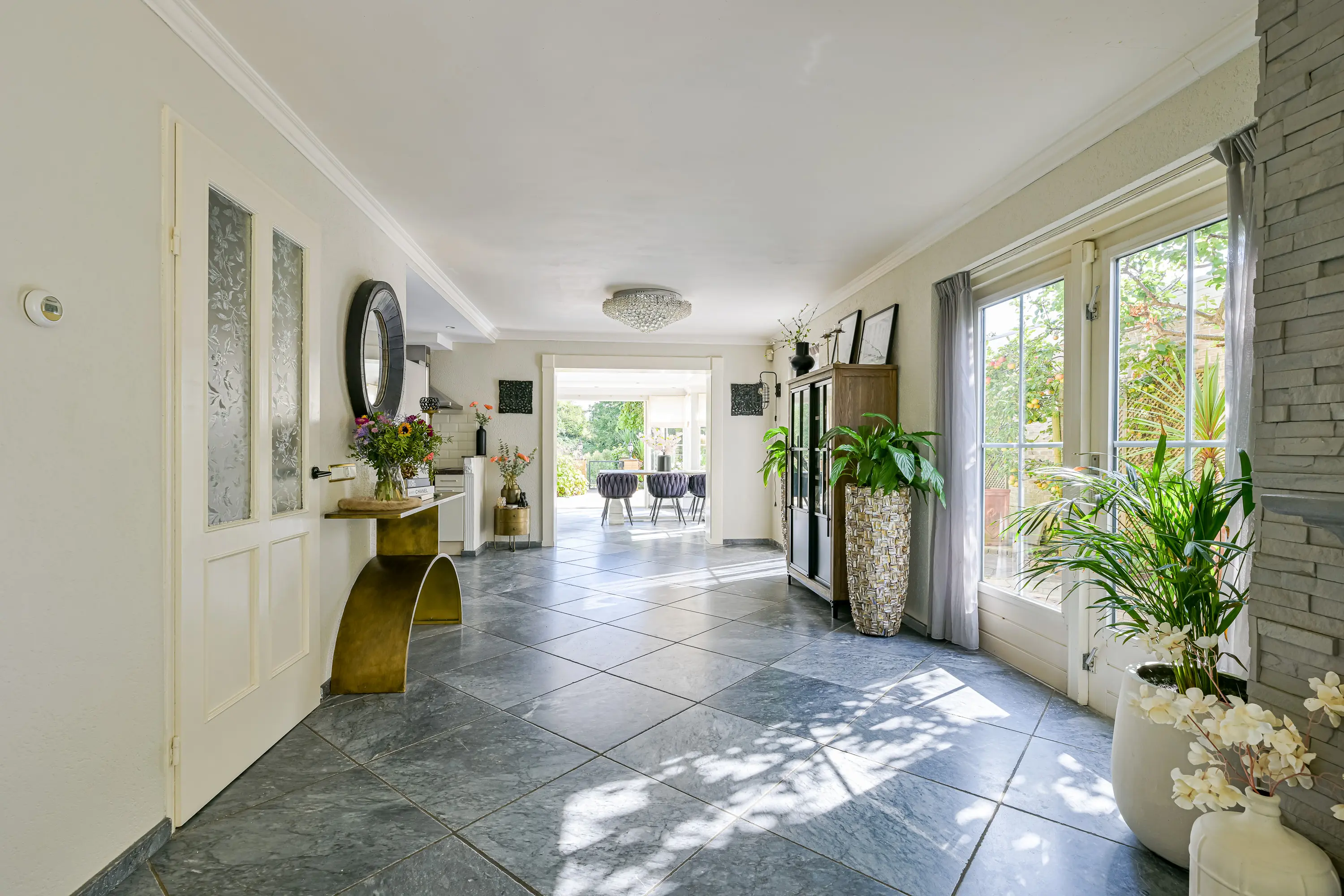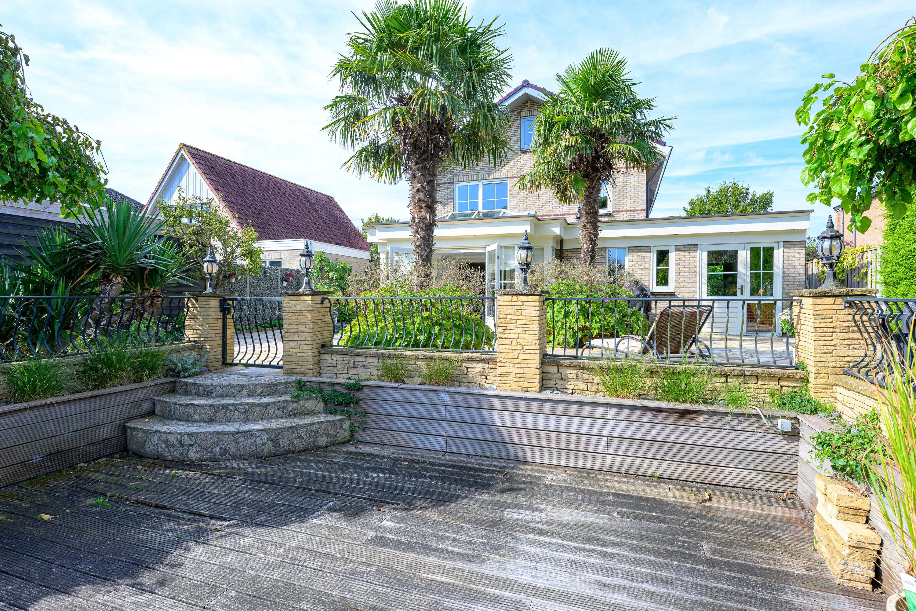 Op een van de allermooiste plekken van Enkhuizen gelegen fraaie en grote villa met garage, met achter prachtig breed vaarwater en mooi zicht op parkachtig bos. Gelegen aan de rand van de populaire uitbreiding "Kadijken" wordt dit deel van de wijk wel 'het gouden rijtje' genoemd. Dit royale huis uit 1998 is nog eens vergroot op de parterre met een heerlijke serre met veel ruimte en daglicht dankzij de speelse raampartijen en opvallend dakvenster. De woning is gelegen op een kavel eigen grond van 485m2. Indeling: overkapte entree, ruime hal, trapopgang, toilet, grote woonkamer met gashaard, fraaie stenen vloer en vloerverwarming. Open keuken; ouder maar groot en compleet. Toegang tot de praktische bijkeuken met de CV en mogelijkheid voor wasmachine en droger. Vanuit hier ook de doorloop naar de aangebouwde garage -7 meter diep- met elektrische garagedeur. De aangebouwde serre is een heerlijke ruimte met dubbele deuren naar de tuin.