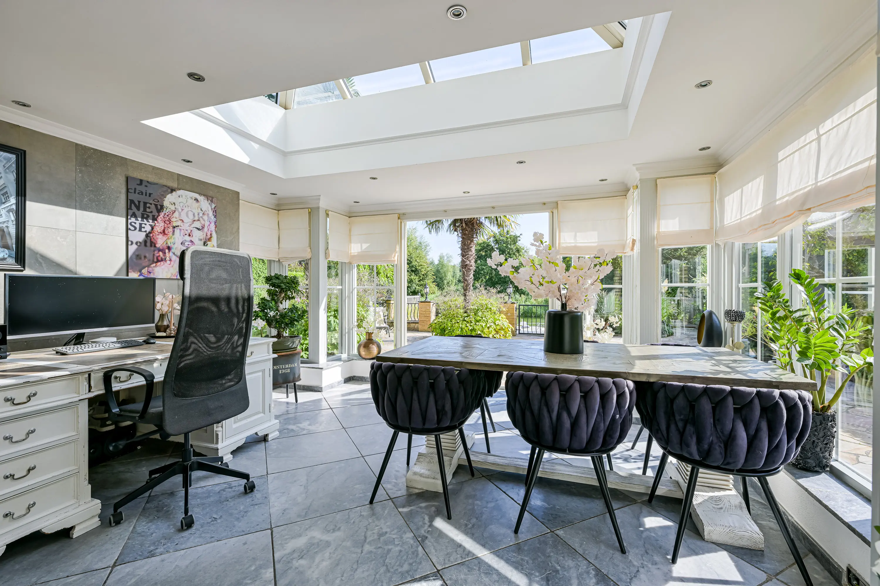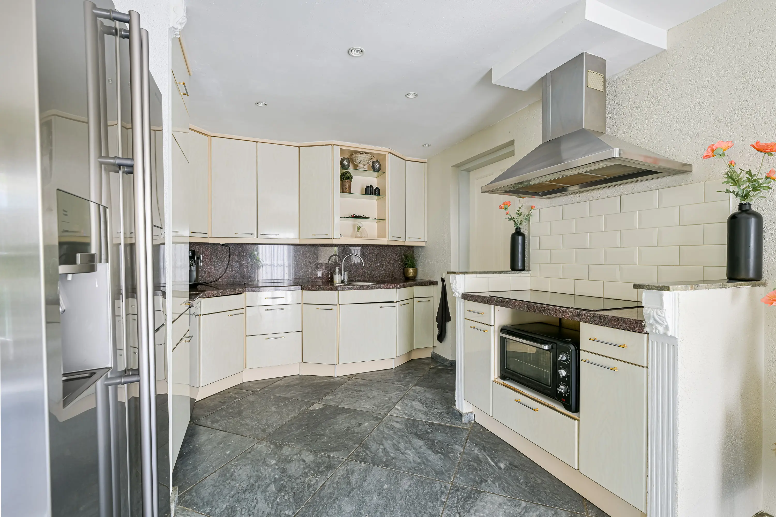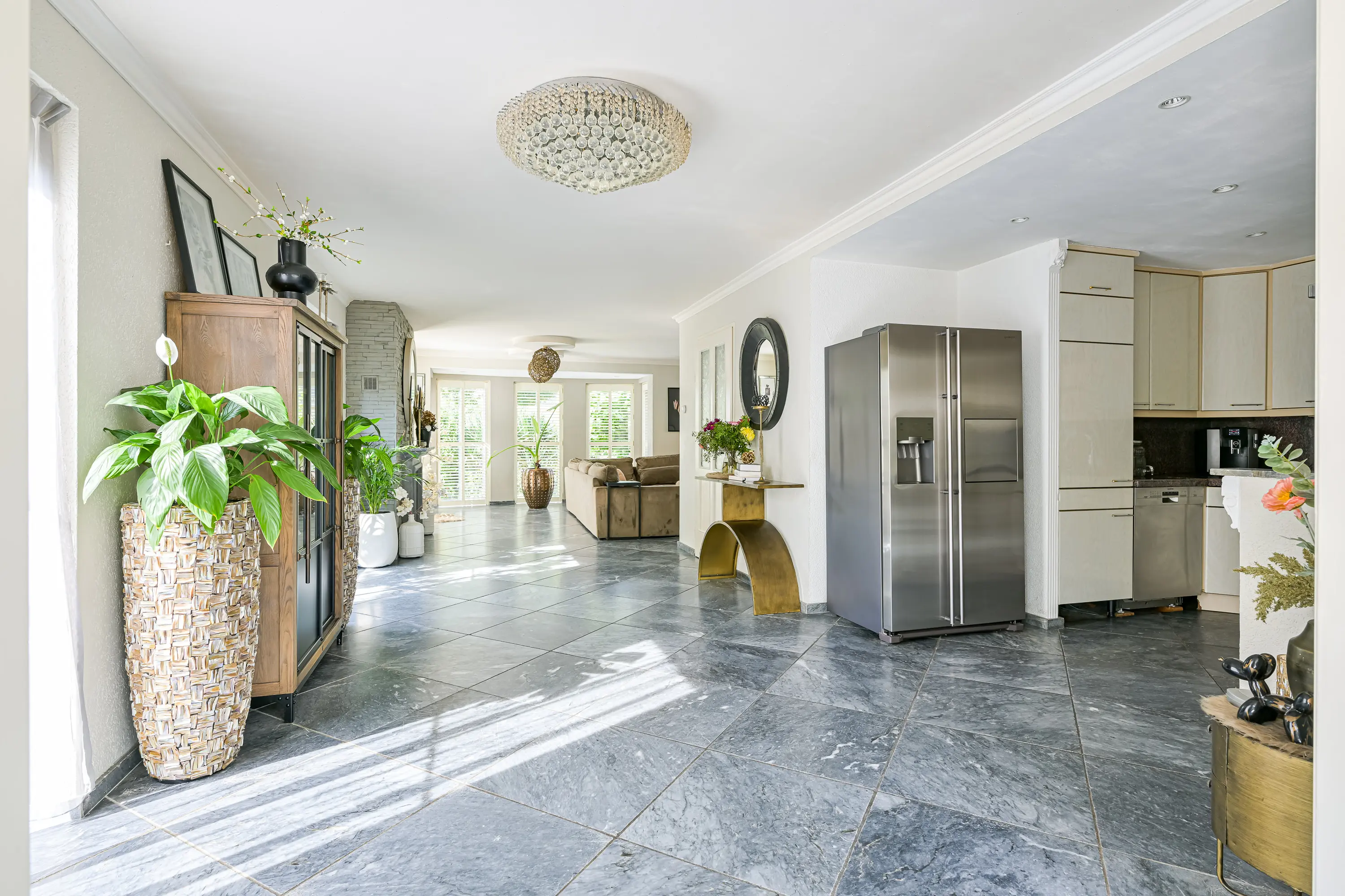 Op een van de allermooiste plekken van Enkhuizen gelegen fraaie en grote villa met garage, met achter prachtig breed vaarwater en mooi zicht op parkachtig bos. Gelegen aan de rand van de populaire uitbreiding "Kadijken" wordt dit deel van de wijk wel 'het gouden rijtje' genoemd. Dit royale huis uit 1998 is nog eens vergroot op de parterre met een heerlijke serre met veel ruimte en daglicht dankzij de speelse raampartijen en opvallend dakvenster. De woning is gelegen op een kavel eigen grond van 485m2. Indeling: overkapte entree, ruime hal, trapopgang, toilet, grote woonkamer met gashaard, fraaie stenen vloer en vloerverwarming. Open keuken; ouder maar groot en compleet. Toegang tot de praktische bijkeuken met de CV en mogelijkheid voor wasmachine en droger. Vanuit hier ook de doorloop naar de aangebouwde garage -7 meter diep- met elektrische garagedeur. De aangebouwde serre is een heerlijke ruimte met dubbele deuren naar de tuin.