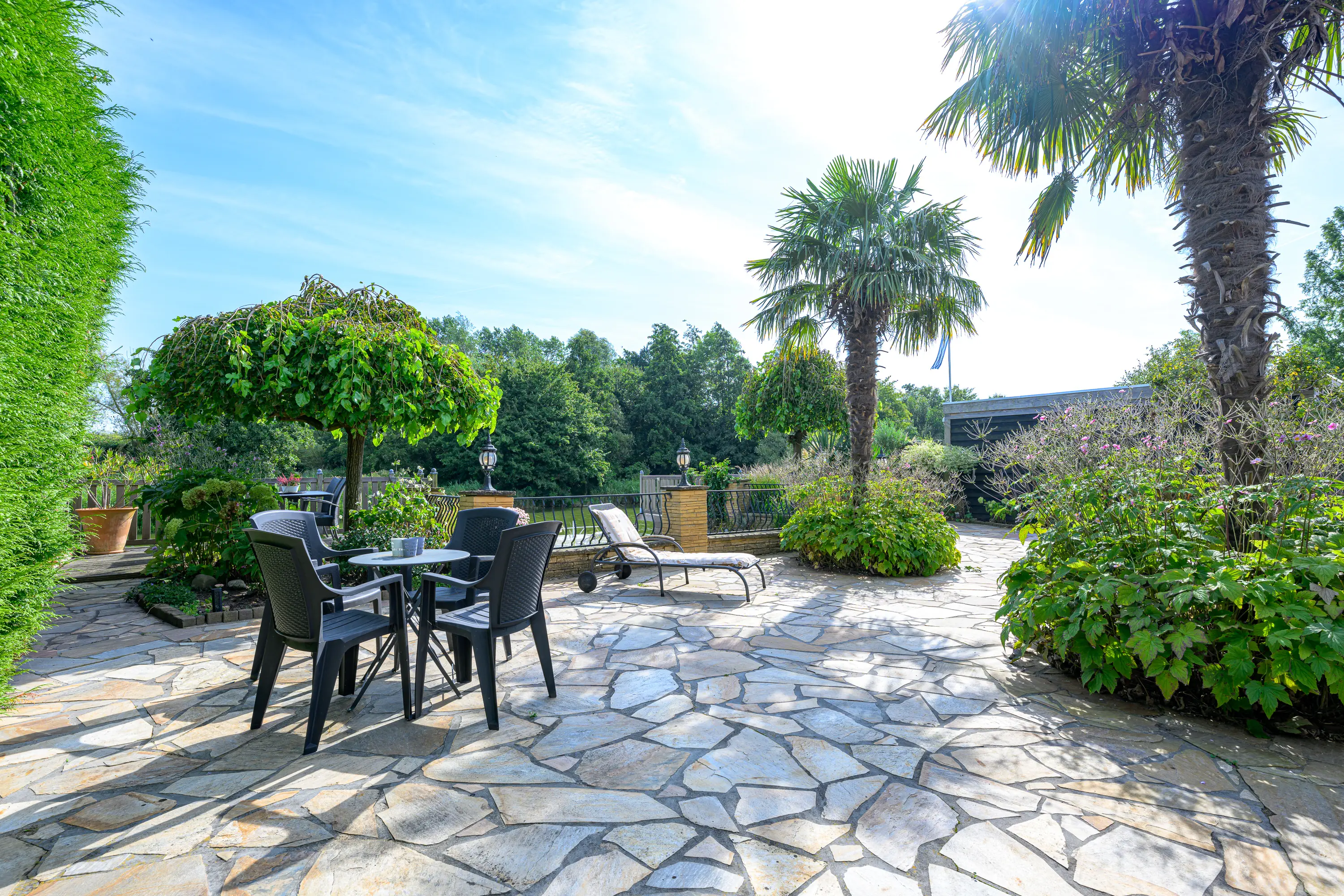 In de tuin waan je je in de méditerranée; prachtig uitzicht, meerdere terrassen, mooi aangelegd, hardhouten aanvaart voor sloep en dus de mogelijkheid om vanaf je eigen tuin richting de charmante binnenstad van Enkhuizen of de natuur van het westfriese landschap te varen.