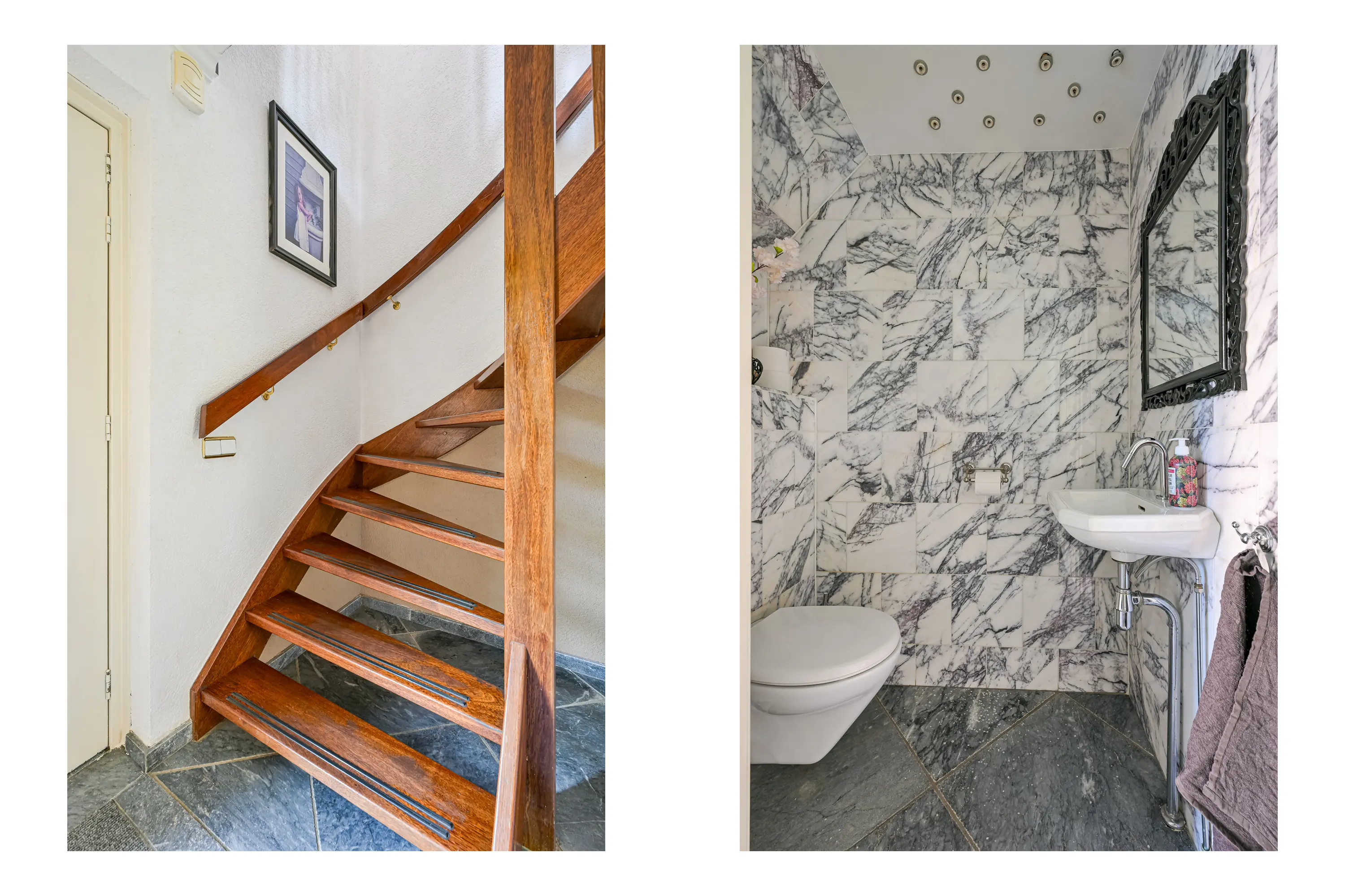 Eerste verdieping: Op de etage merk je dat dit een fors huis is; opvallend grote overloop; ouderslaapkamer over de gehele breedte met toegang tot ruim balkon aan de voorzijde. Riante, in marmer betegelde, badkamer met vloerverwarming; luxe dubbel wastafelmeubel, royaal bemeten inloopdouche en tweede toilet. Nogmaals twee prima slaapkamers. Vanaf de overloop is via een vlizotrap de zolder bereikbaar met stahoogte in de nok; ook met betonnen vloer en een zee aan berg/opslagruimte. Aan de voorzijde is het huis ruim gelegen en heeft een eigen oprijpad. Enkhuizen beschikt over stadse voorzieningen en prima bereikbaarheid. De A7 en regio Amsterdam zijn eigenlijk dichtbij. Winkels, NS-station, het IJsselmeer, basis- en voortgezet onderwijs; alles is voor handen! Neem contact op voor een rondleiding, aanvaarding in overleg.