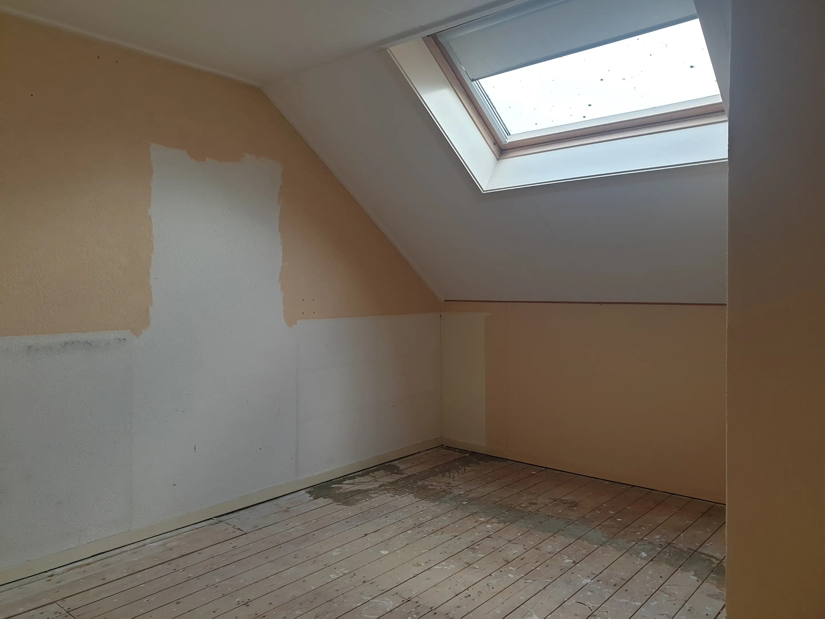 Opvallend grote zolderetage (houten verdiepingsvloer) via vaste trap met slaapkamer, CV-HRcombiketel (2019) en bergruimte.