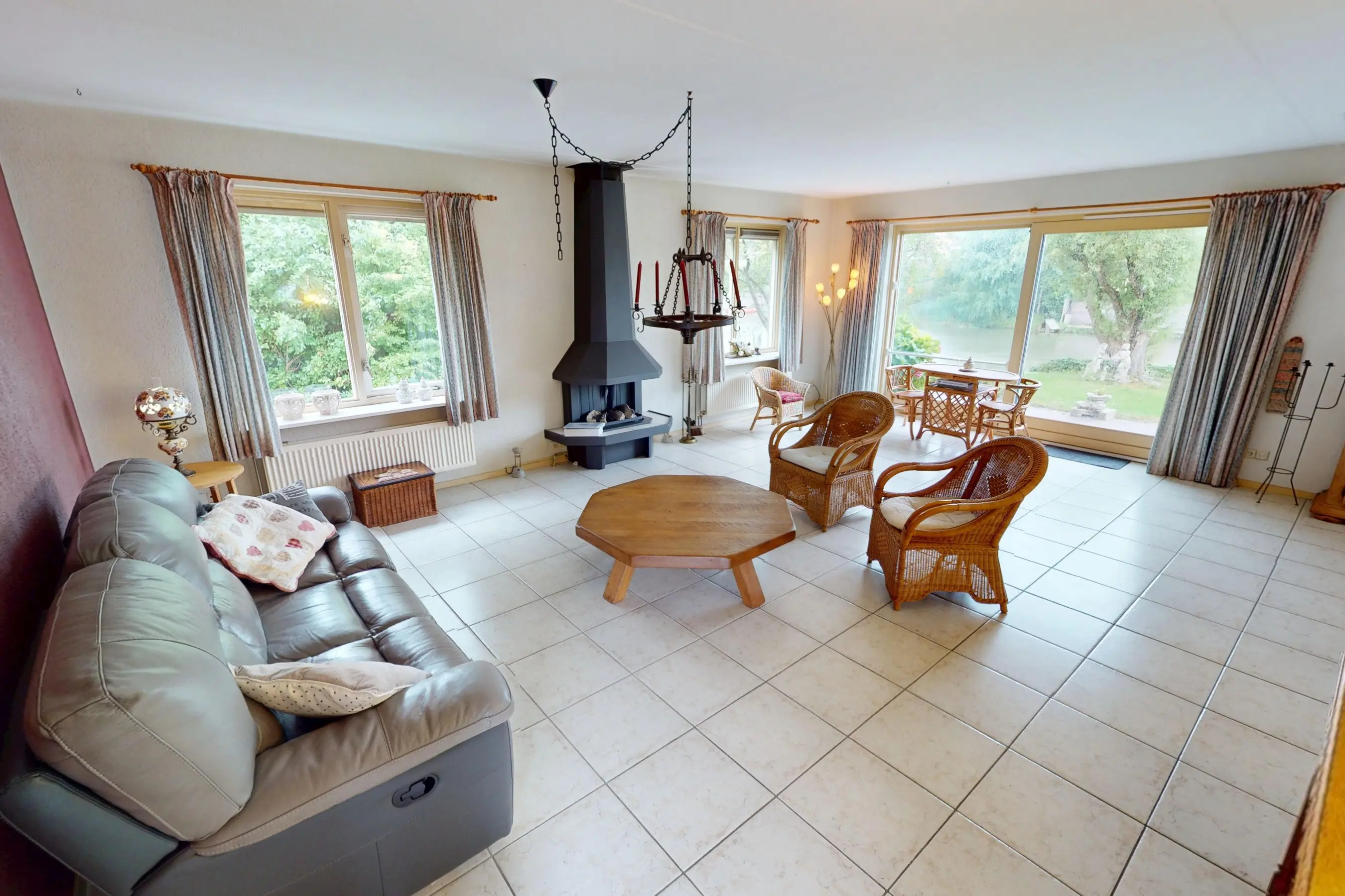 Vanuit de hal stapt u de centrale plek van de woning binnen! Deze riante woonkamer is een lust voor het oog! U zult verrast zijn door de lichtinval in deze brede woonkamer! Door de vele ramen heeft u enorm veel licht en zon in de woonkamer! Een heerlijke plek om te vertoeven. De schuifpui vormt een fraaie overgang naar de achtergelegen tuin. U kunt in deze woonkamer prima een heerlijk loungebank plaatsen met fraai zicht op het water! De gashaard draagt, samen met de plavuizenvloer met comfortabele vloerverwarming, bij aan de fijne sfeer die u hier kunt creëren! Komt u maar eens aan de eettafel in de woonkamer plaatsnemen en geniet van het uitzicht aan de achterzijde van de woning!