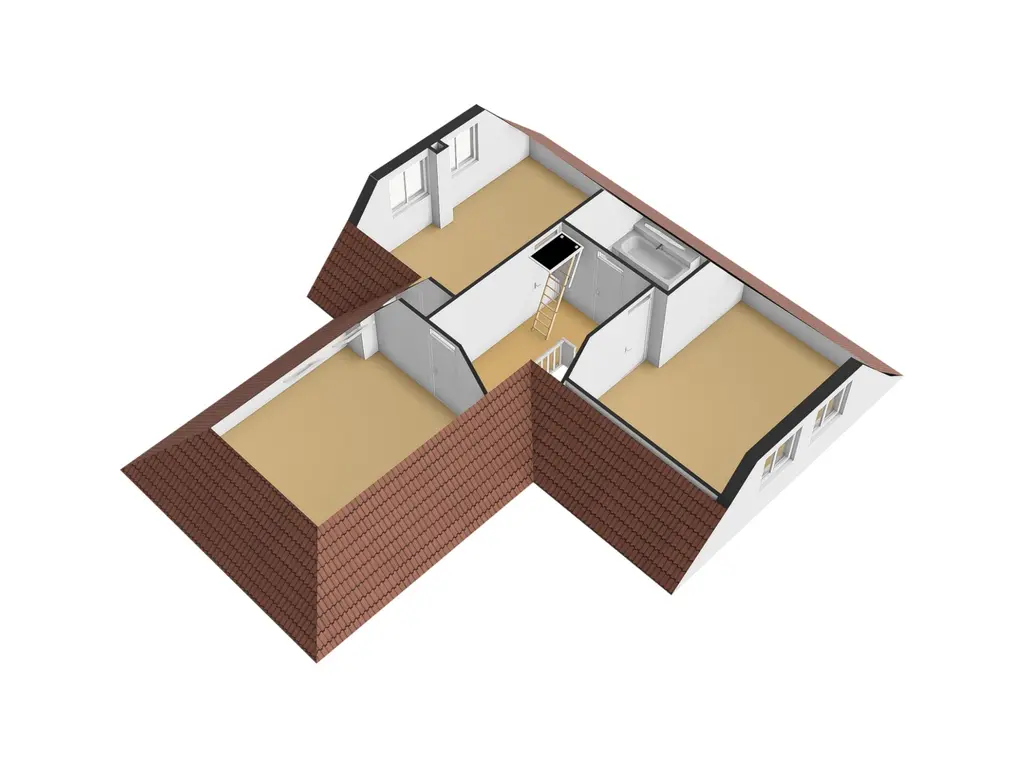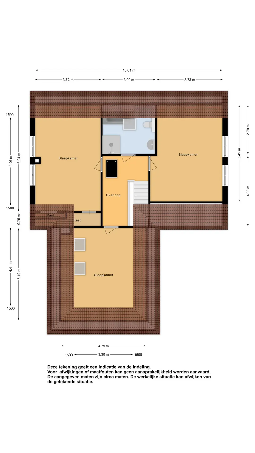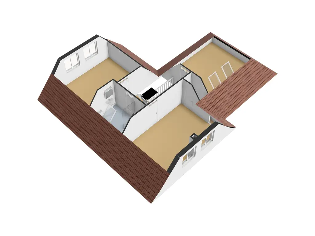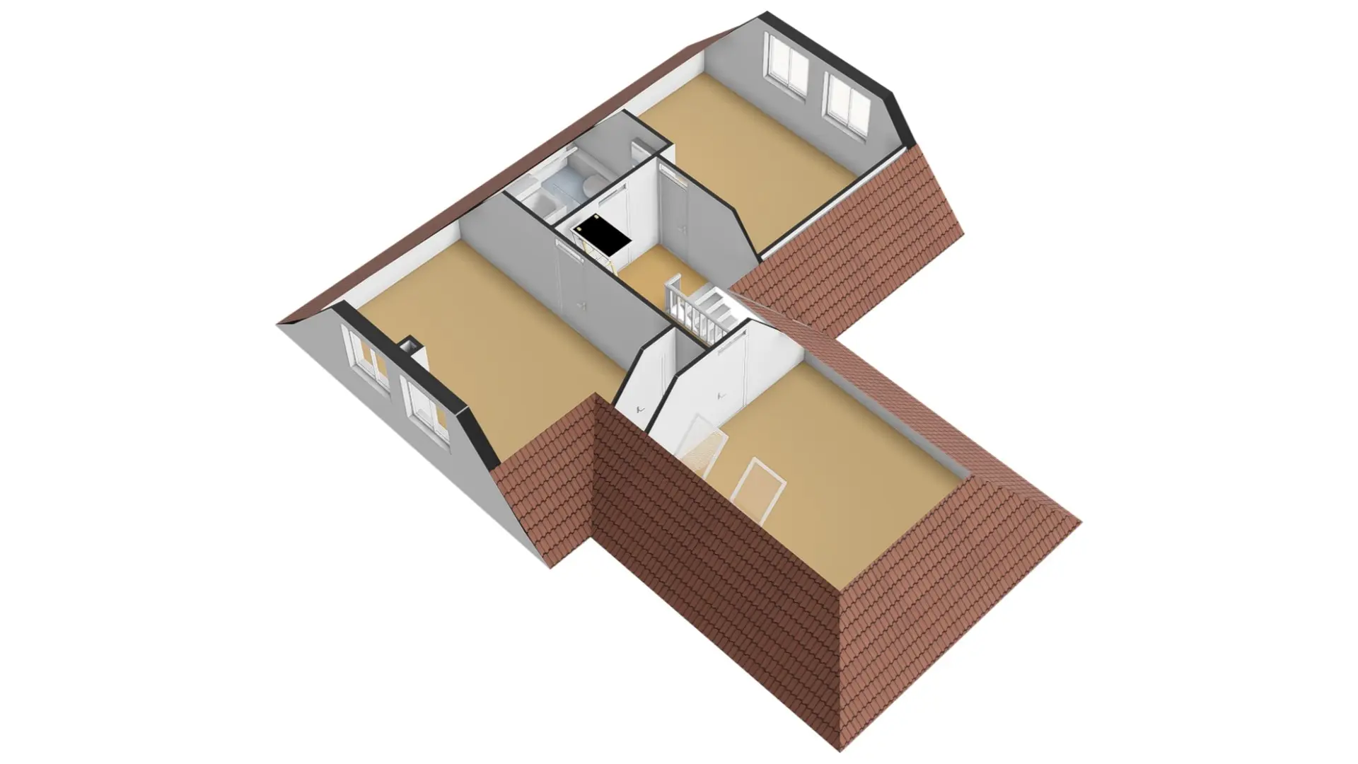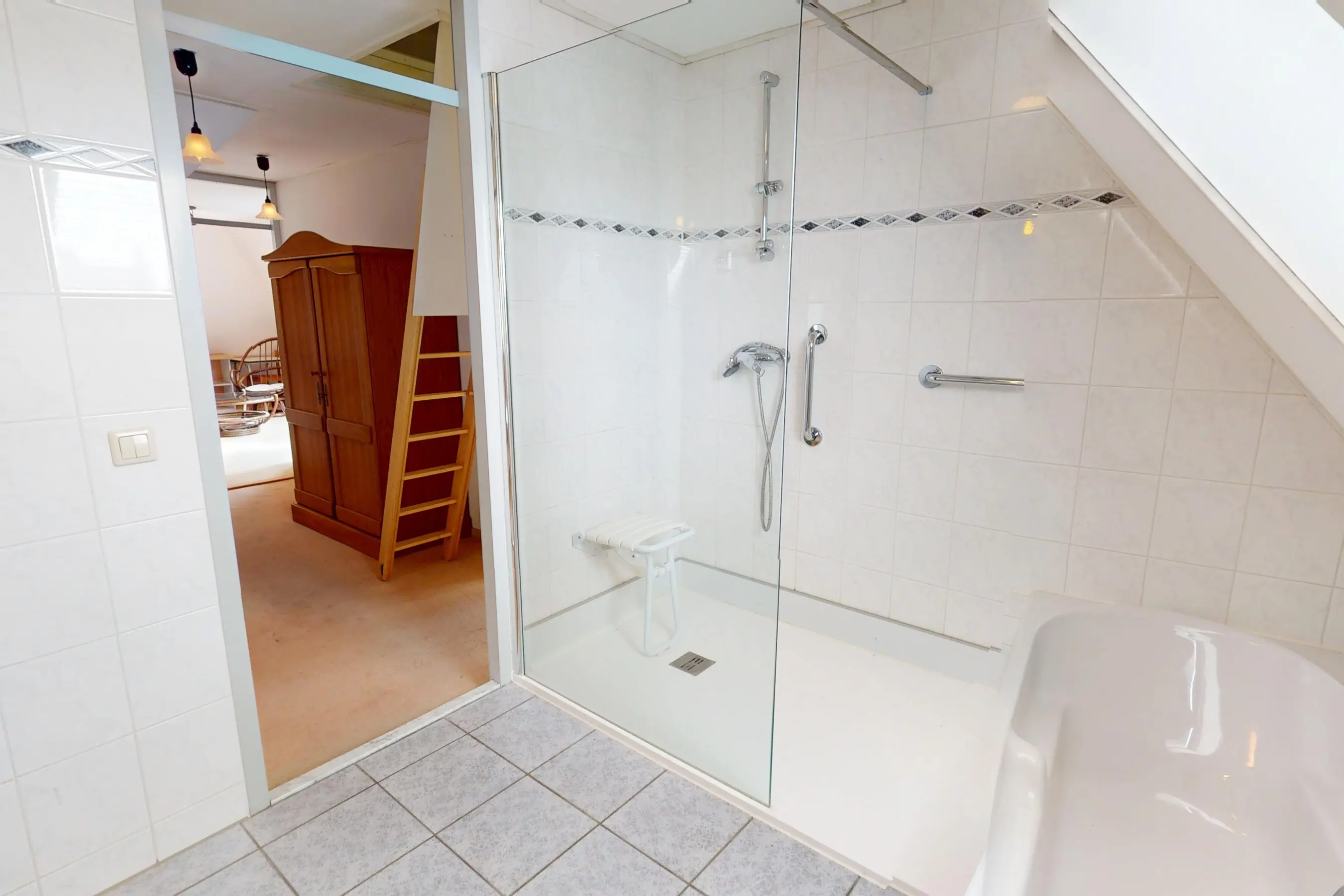 De keurige en ruime badkamer is uitgevoerd in een lichte kleurstelling en voorzien van een inloopdouche, ligbad, wastafel en een hangcloset. De badkamer is volledig betegeld en voorzien van dakraam, waardoor u deze ruimte op een natuurlijke manier kunt ventileren!