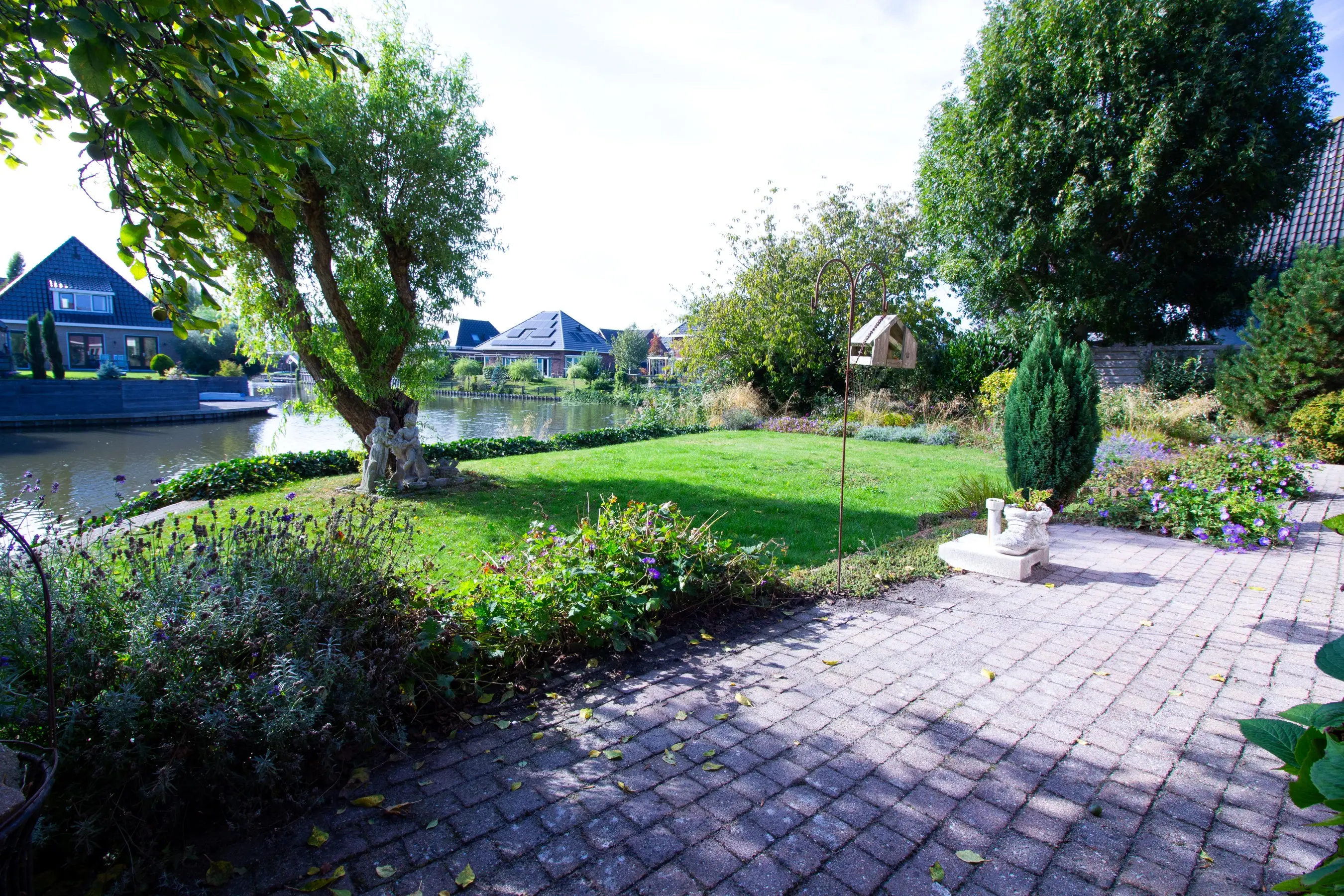 Tuin: de riante tuin heeft een fantastische kijk op het achtergelegen viswater. Dit brede water is een ideale karper- of snoekstek! Er is veel gebruik gemaakt van vaste beplantingen, sierbestrating en een fraaie plek aan het water. Door de ligging van de woning op het perceel en de diepte van de tuin, heeft u verrassend veel zon in de achtertuin! De tuin loopt volledig om de gehele woning heen, zodat u eventueel ook de achterzijde kunt bereiken zonder de woning te betreden. Ideaal als u lekker bezig bent in de tuin. Deze tuin is zeer geschikt voor diegene die graag van groene vingers houden. Op de steiger heeft u een heerlijke plek om te relaxen en te loungen! En met de aanwezige rust aan het water lekker indommelen wellicht.