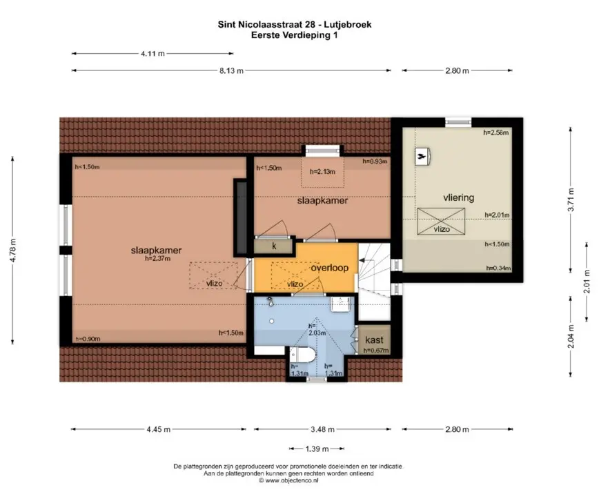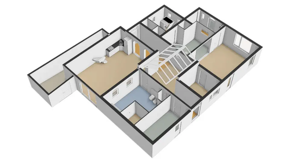 Voorbij de keuken en kelderruimte vindt u de bijkeuken met inbouwkast, wasmachine/droger opstelling, een toilet en een middels een vlizotrap bereikbare zeer recent geïsoleerde vliering met dakkapel waar de CV combiketel en de omvormer voor de 17 zonnepanelen geplaatst is.