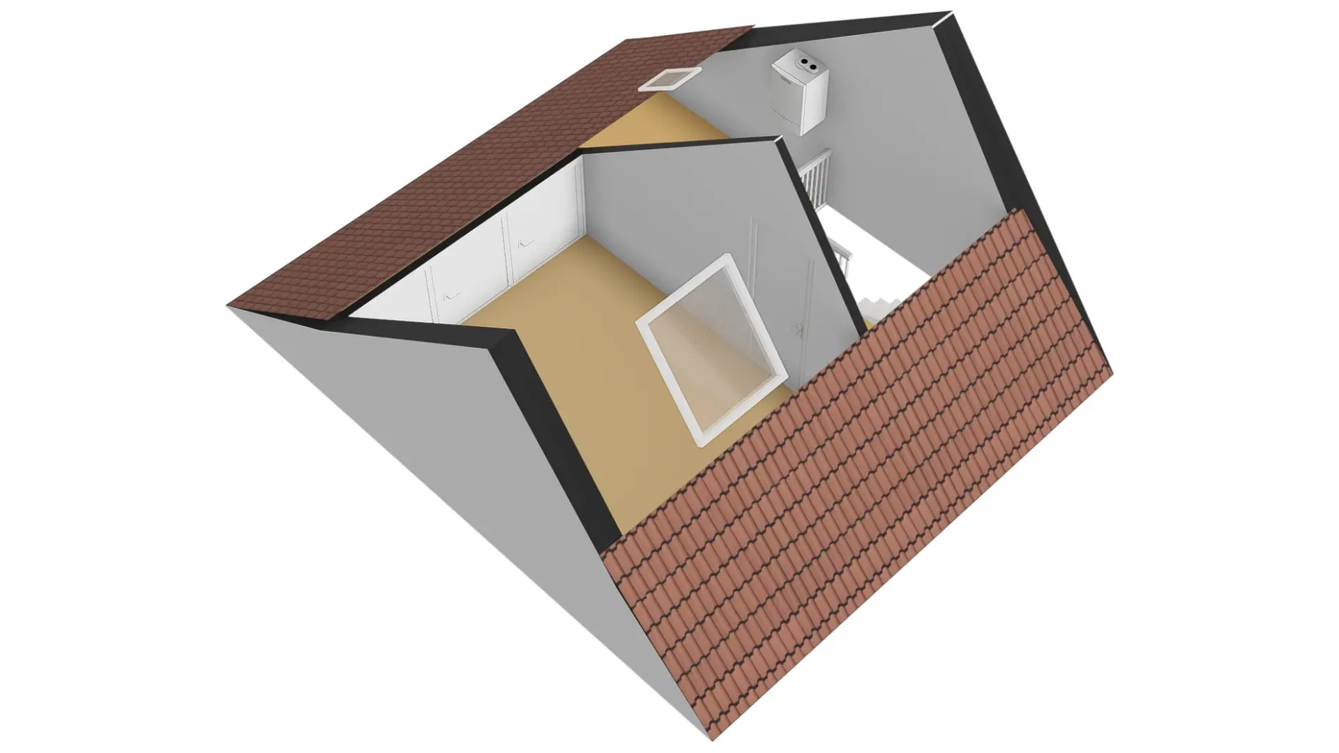 2e verdieping: via de vaste trap komt u op de 2e verdieping. Op de voorzolder heeft u de mogelijkheid om hier uw wasmachine opstelling te plaatsen. Tevens is hier de CV installatie geïnstalleerd. Uiteraard heeft u hier nog voldoende ruimte voor het bergen van uw spulletjes. De 4e slaapkamer, dat zich op deze verdieping bevindt, is ook zeer geschikt als werkkamer of een prachtige tienerkamer! Deze slaapkamer met Velux dakraam is bovendien uitgevoerd met knieschotten, waardoor u nog meer opbergruimte heeft.