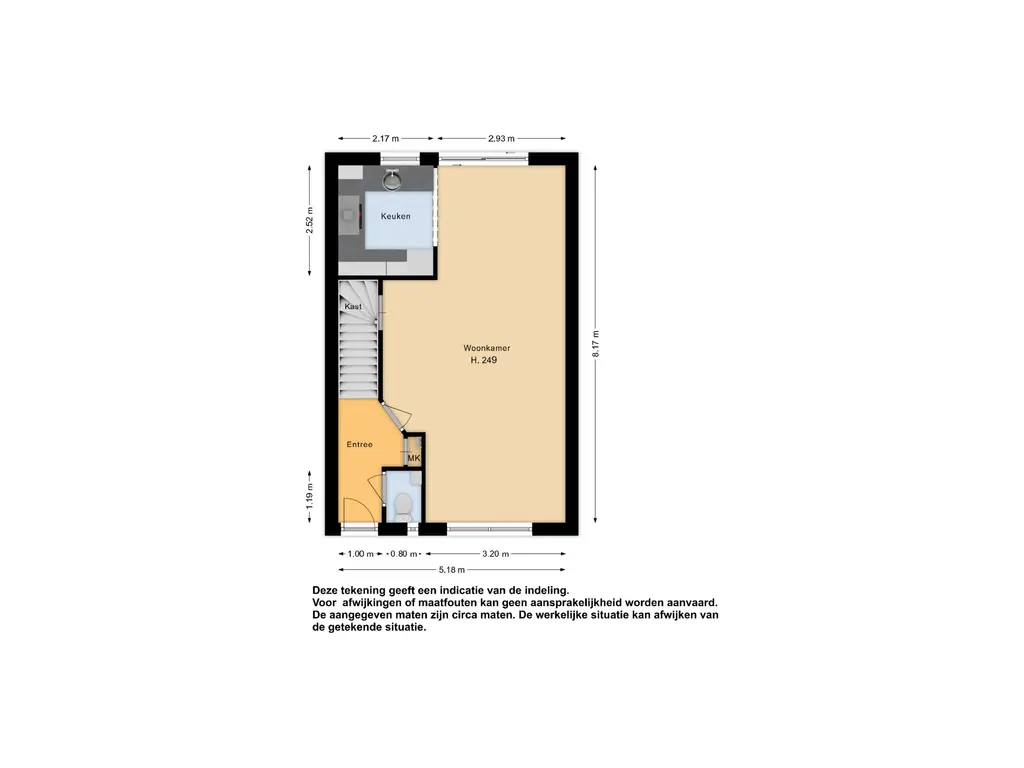 Begane grond: via de entree aan de voorzijde komt u in de hal met toegang tot meterkast, functionele toiletruimte met closet en fonteintje en de trapopgang naar de 1e verdieping.