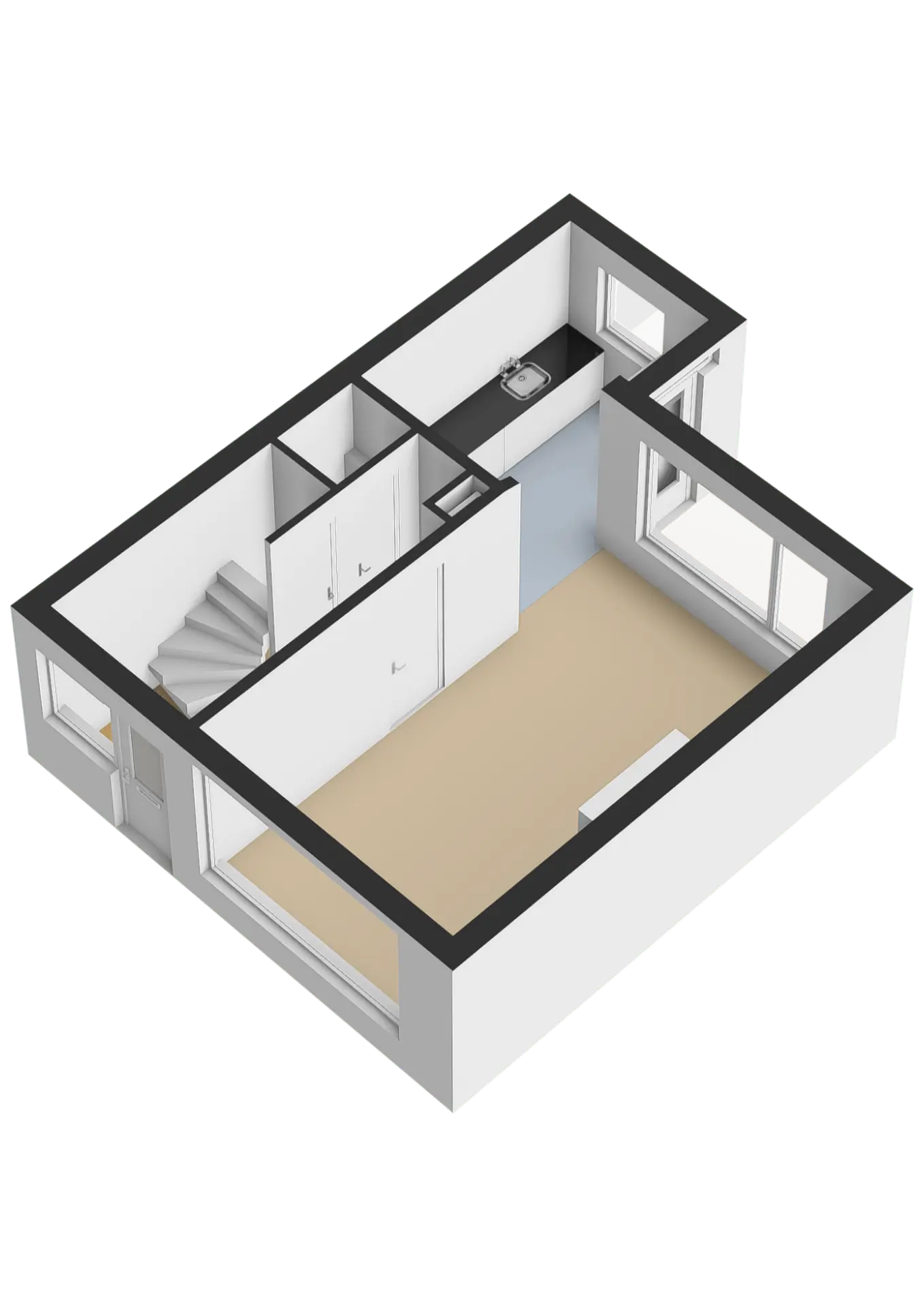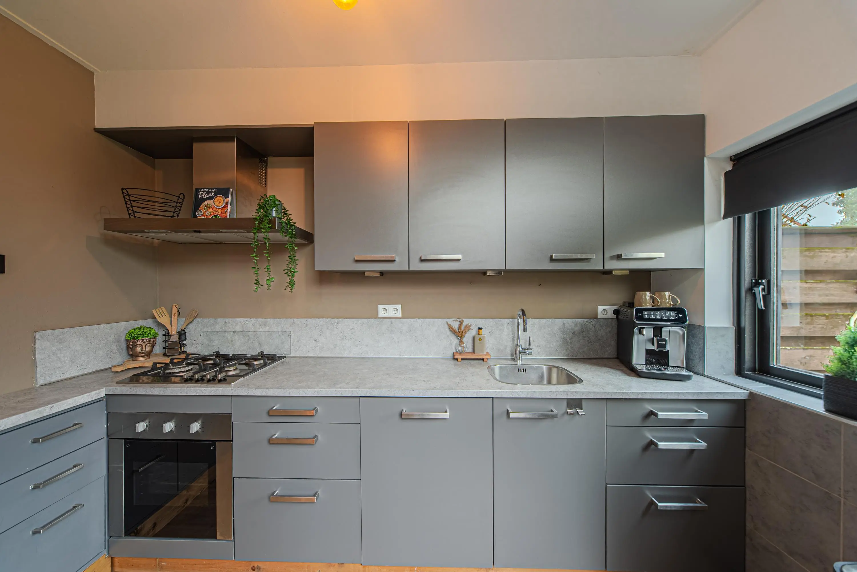 Bij binnenkomst arriveert u in de hal die toegang biedt tot het toilet met vrijhangend wandcloset en fonteintje, de meterkast, de kelderkast onder de trapopgang naar boven en de lichte woonkamer met half open keuken. De doorzonwoonkamer beschikt over royale raampartijen, wat zorgt voor een aangename lichtinval en een warme, uitnodigende sfeer. Alle verdiepingen in de gehele woning zijn voorzien van een laminaatvloer met een warm houtmotief. De woonkamer bied genoeg ruimte om naast de hoekbank ook een royale eethoek te plaatsen, zo blijft u tijdens het kokkerellen toch betrokken bij de familie of vrienden die hieraan plaats nemen. De halfopen keuken bevindt zich aan de achterzijde van de woning, is voorzien van diverse inbouw apparatuur en vanuit de keuken bereikt u de fraai verzorgde achtertuin.