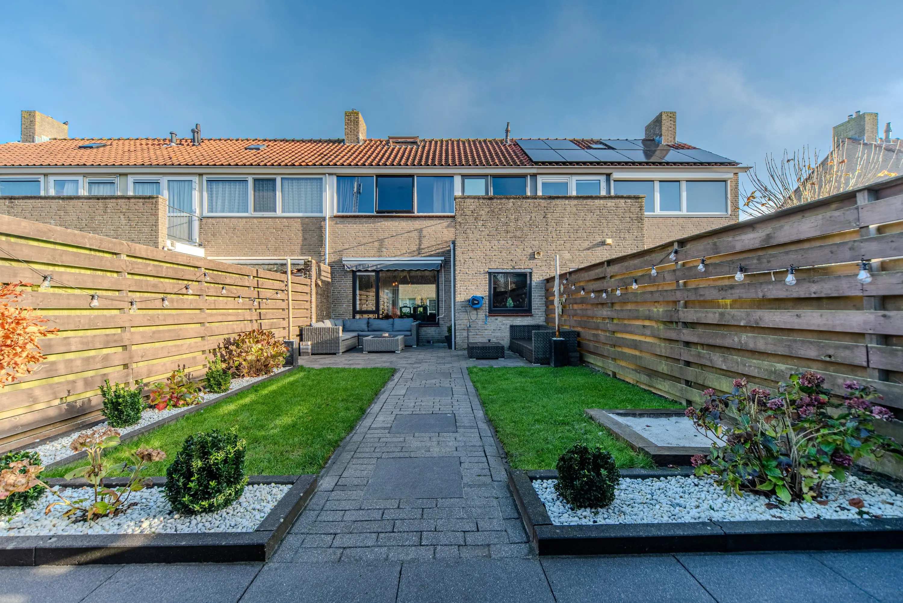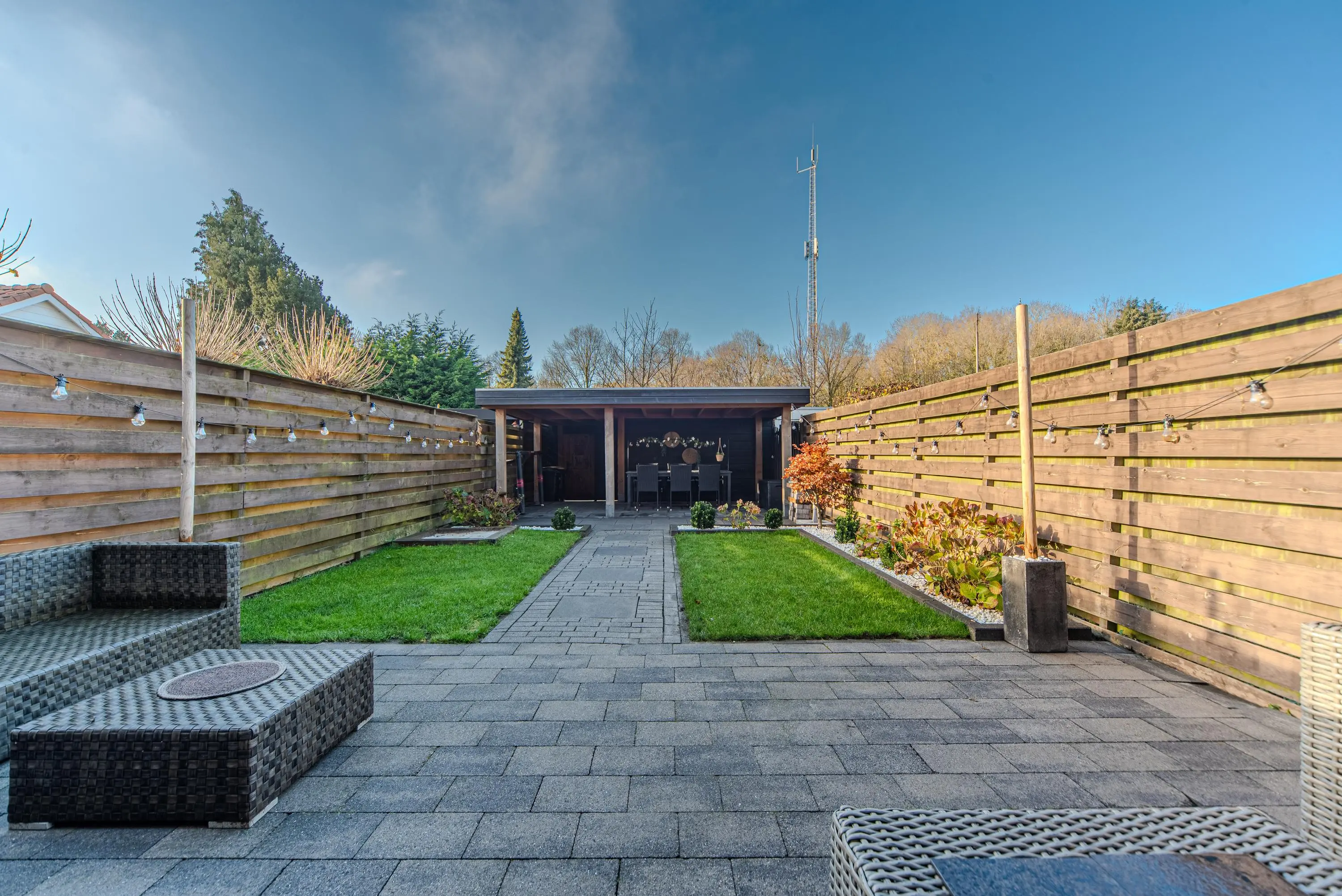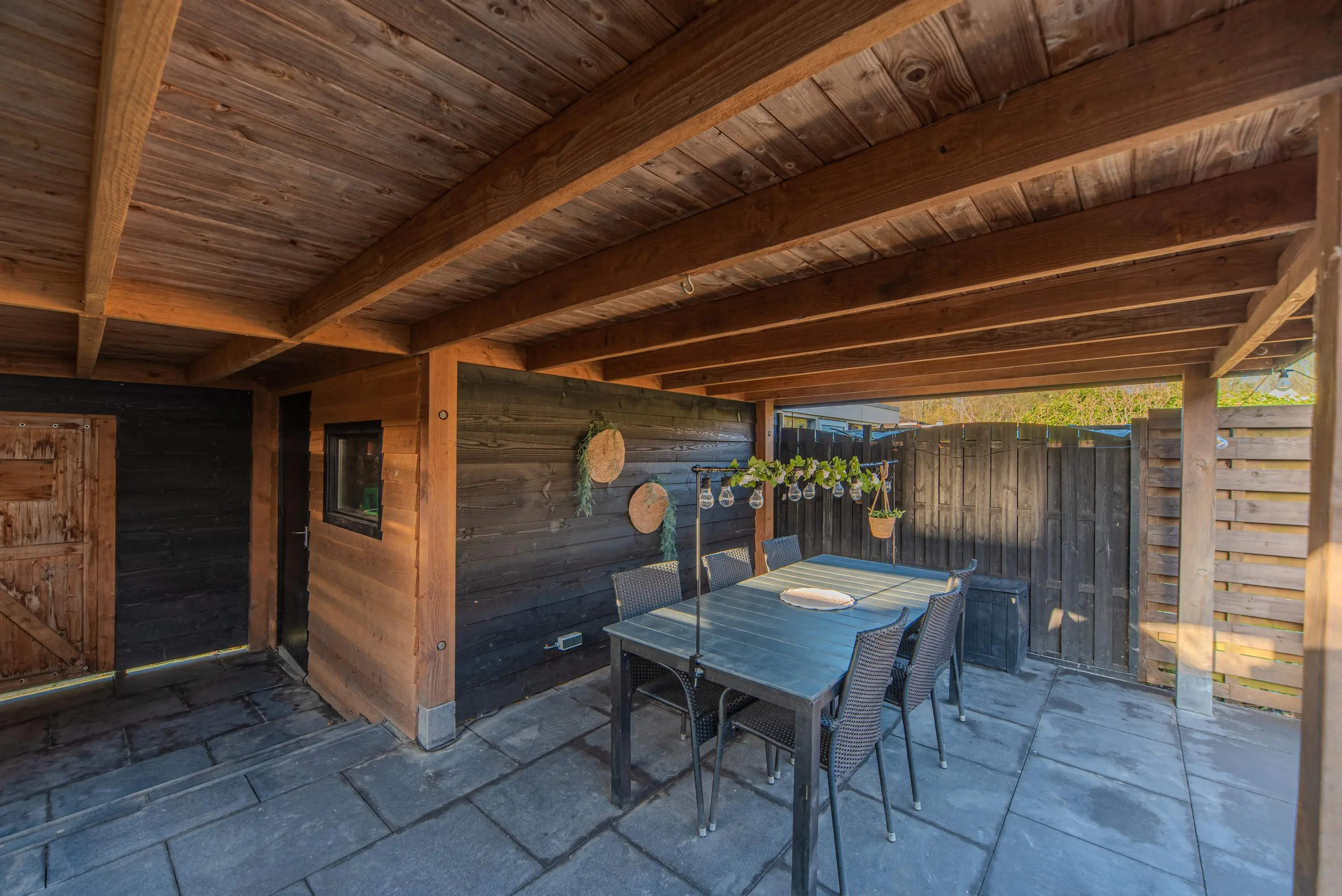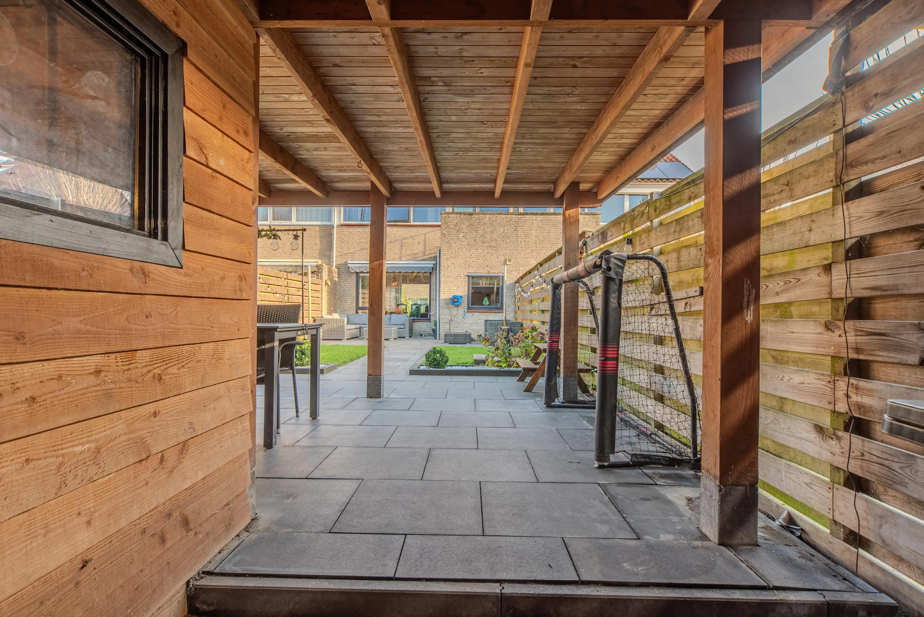 De voor- en achtertuin zijn beide zeer verzorgd aangelegd en bieden prettige plekken om te ontspannen. Aan de achterzijde treft u een brede overkapping die zich uitstrekt over de volledige breedte van de tuin. De berging maakt deel uit van deze overkapping, waardoor er een praktische en droge opslagruimte ontstaat voor fietsen, tuingereedschap of andere benodigdheden. Via de achterom is de tuin bovendien gemakkelijk bereikbaar.